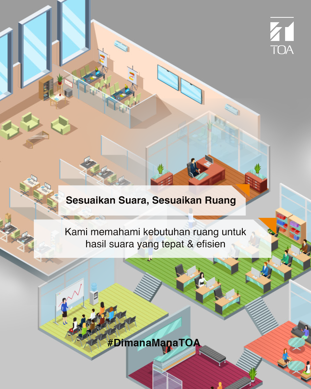 Melalui solusi audio yang tepat dan terencana, TOA Indonesia berkomitmen mendukung terciptanya lingkungan yang nyaman, profesional, dan komunikatif di berbagai ruang.