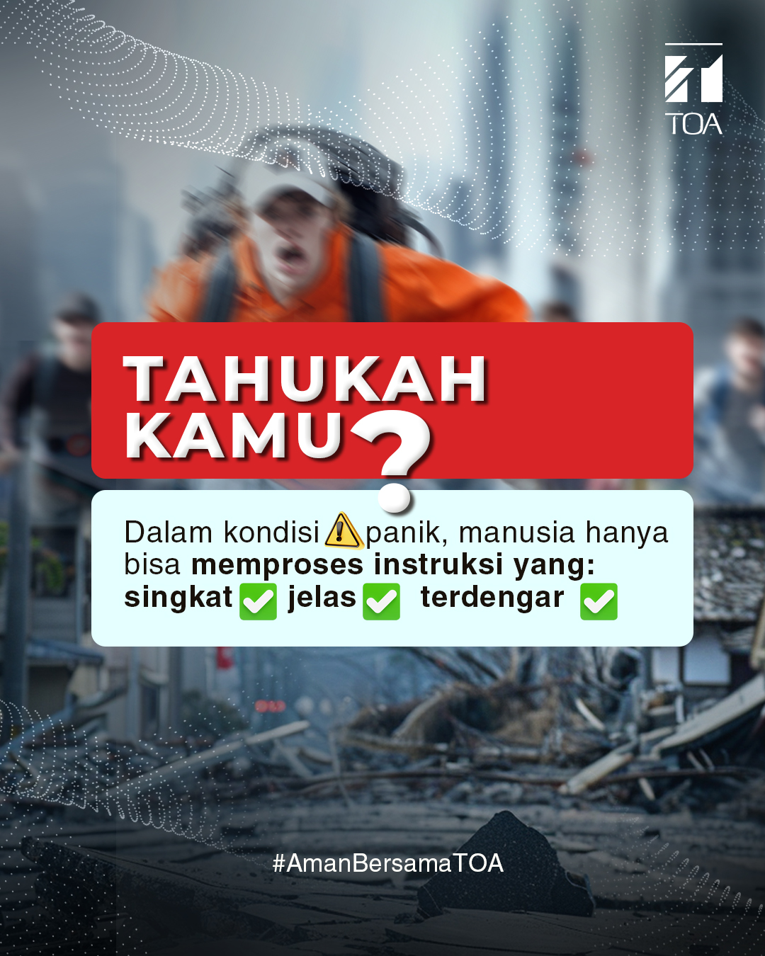 Sebagai bagian dari komitmen dalam mendukung keselamatan publik, TOA Indonesia menghadirkan solusi sistem komunikasi yang dirancang untuk membantu penyampaian informasi secara efektif, khususnya dalam situasi darurat.